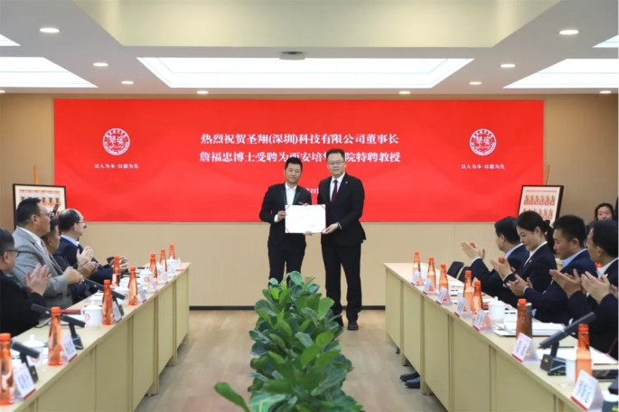 姜波理事长为圣翔(深圳)科技有限公司董事长詹福忠博士颁发聘书