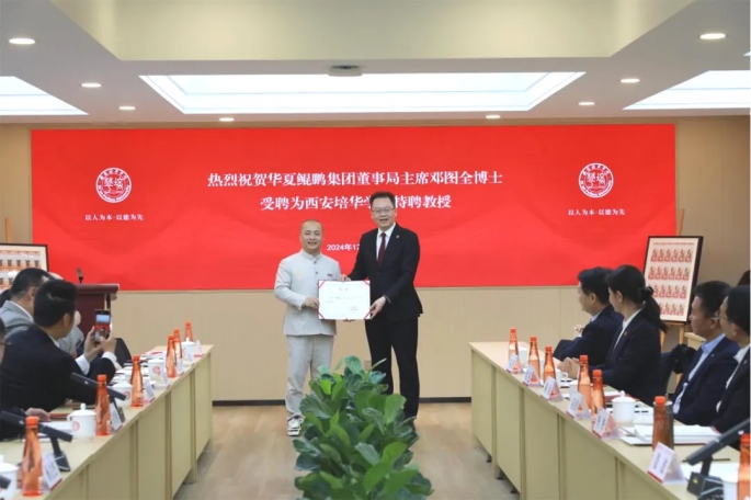 12月22日,西安培华学院特聘教授聘任暨校企合作集中签约仪式在西安成功举行。华夏鲲鹏集团董事局主席邓图全,世界华商投资基金会主席马兴利,圣翔(深圳)科技有限公司董事长詹福忠,泛美集团董事长魏全斌,世界华人协会主席张雨轩等领导和嘉宾,西安培华学院理事长姜波等学校领导和相关职能部门负责人、二级学院师生代表参加。副校长罗新远主持活动。
