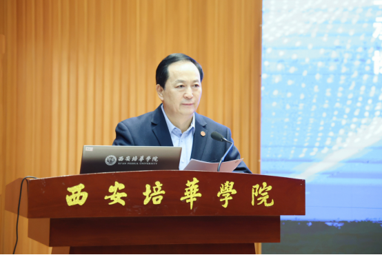 西安培华学院理事长姜波致欢迎词,他介绍了学校的发展历史,表示学校高度重视职业教育和实用性人才的培养,始终在创新中不断前行,近年来培华深度强化校企合作,目前合作企业超过200家,建立9个产业学院,他希望在数字化转型时代下,与政府、企业、同行携手并肩,培养更多适应未来的个性化数据人才。