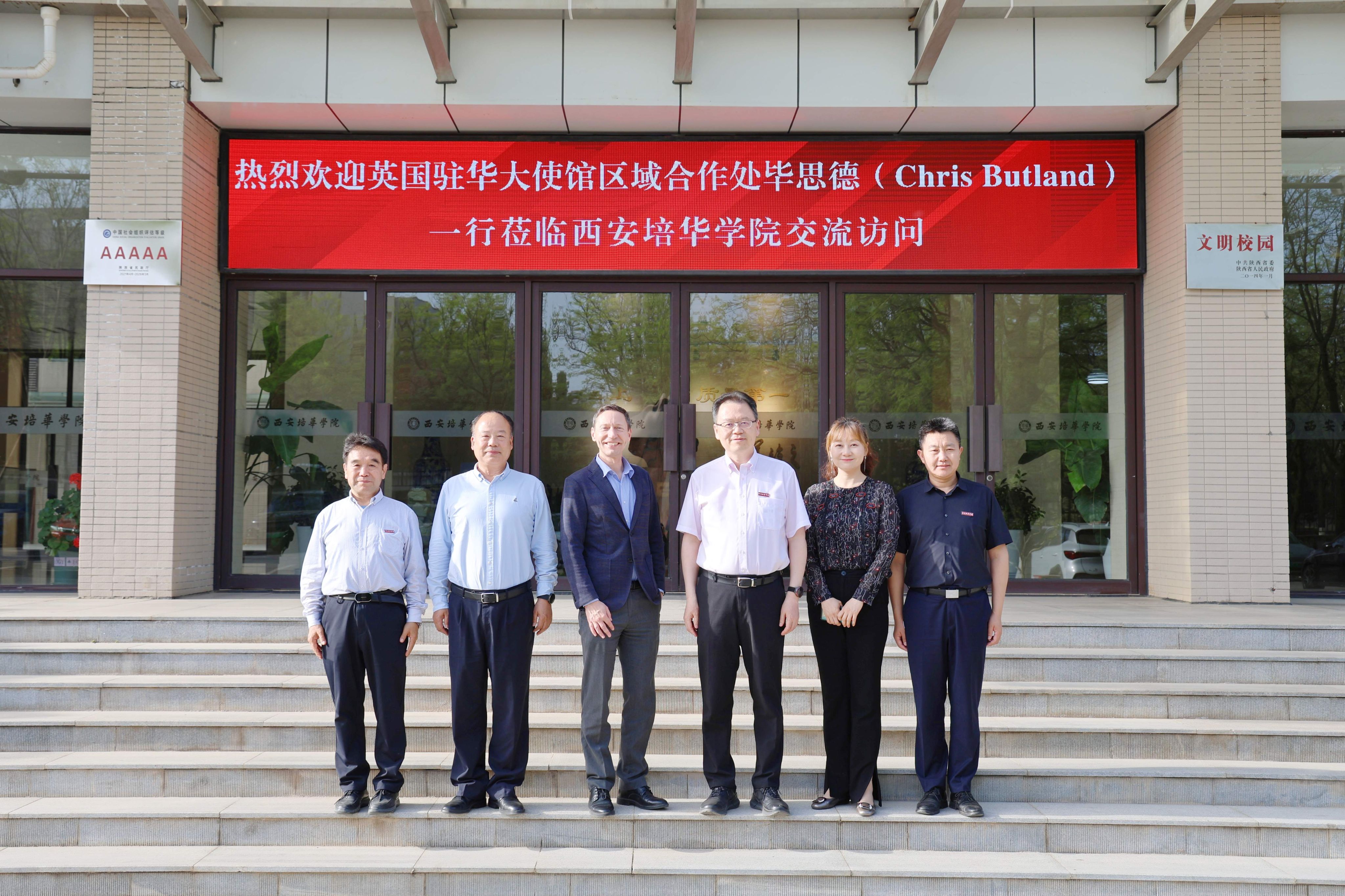 4月17日下午,英国驻华大使馆区域合作处北方地区主管毕思德(Chris Butland)一行莅临培华并于明德楼一楼接待室座谈交流。西安培华学院理事长姜波,副校长罗新远,合作发展中心主任柳雨出席会议。座谈会由陕西省工业合作协会副理事长兼秘书长、西安培华学院教师秦泉安主持。