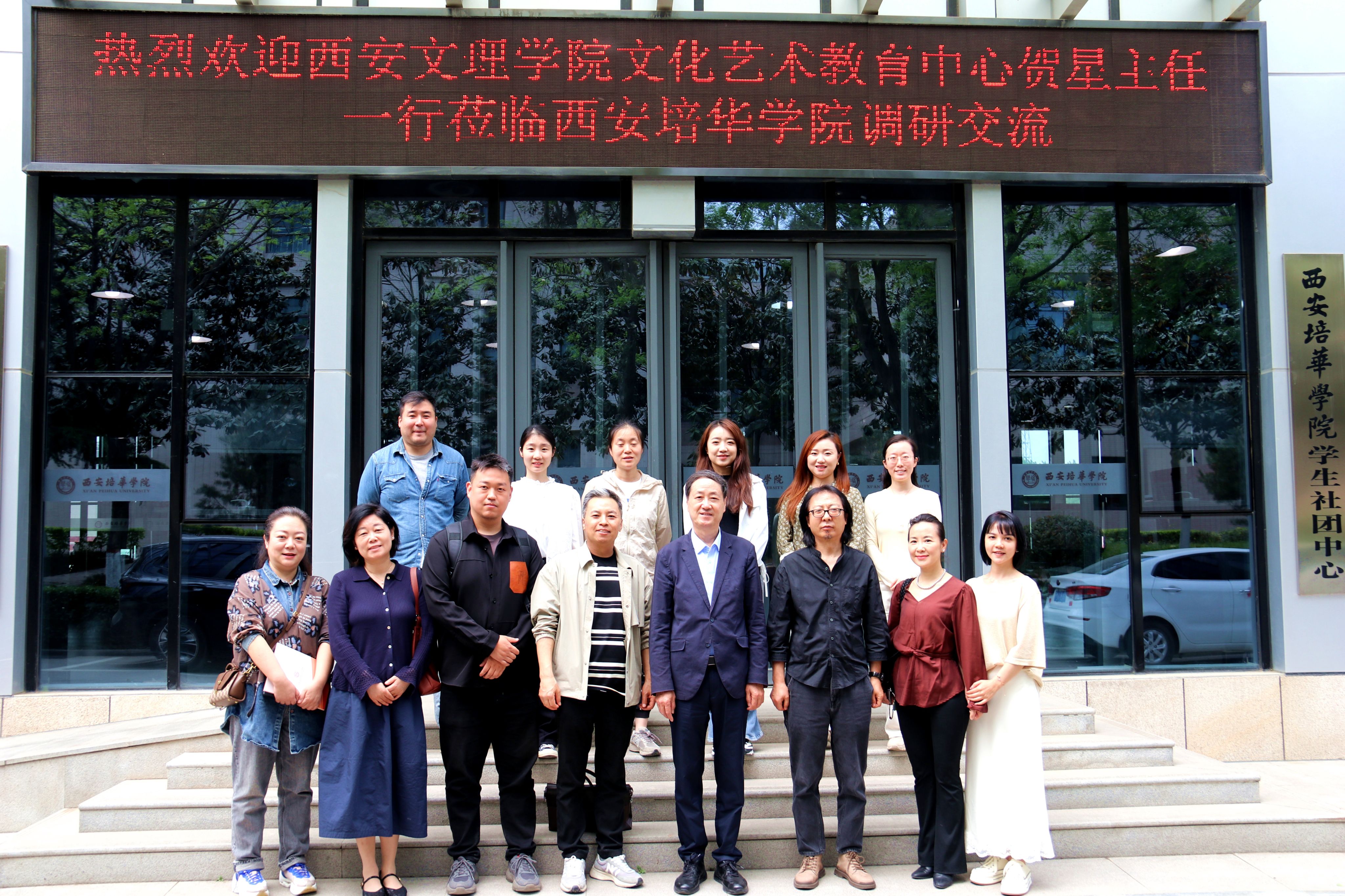 4月18日上午,西安文理学院文化艺术教育中心主任贺星教授一行7人来访培华,与学校艺术教育中心开展校际交流活动。双方围绕大学公共艺术教育课程设置、开展美育浸润活动、大学生艺术团及学生社团建设与发展、师资队伍建设、校园文化活动等情况展开深入探讨,共话新时代高校艺术教育高质量发展。