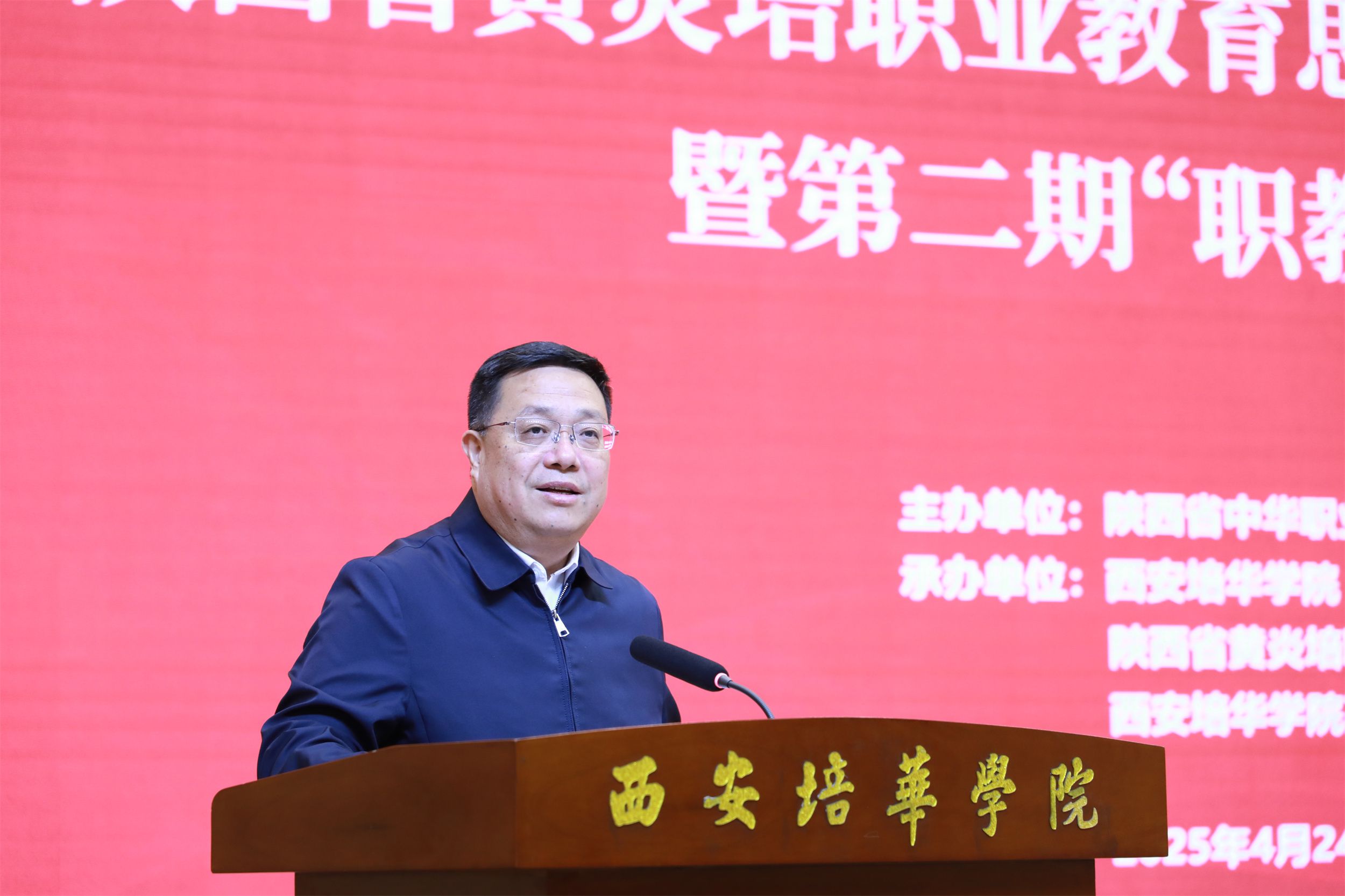陕西省政协副主席、省中华职业教育社主任李忠民同志讲话,他指出,黄炎培先生作为我国职业教育的奠基人,其“手脑并用、做学合一”的育人理念、“大职业教育主义”的开放格局,至今仍闪耀着真理光芒。在党的二十大提出“统筹三教协同创新”的战略背景下,在举国上下深入学习贯彻《教育强国规划纲要》的热潮中,我们更要深入挖掘黄炎培职业教育思想的当代价值。