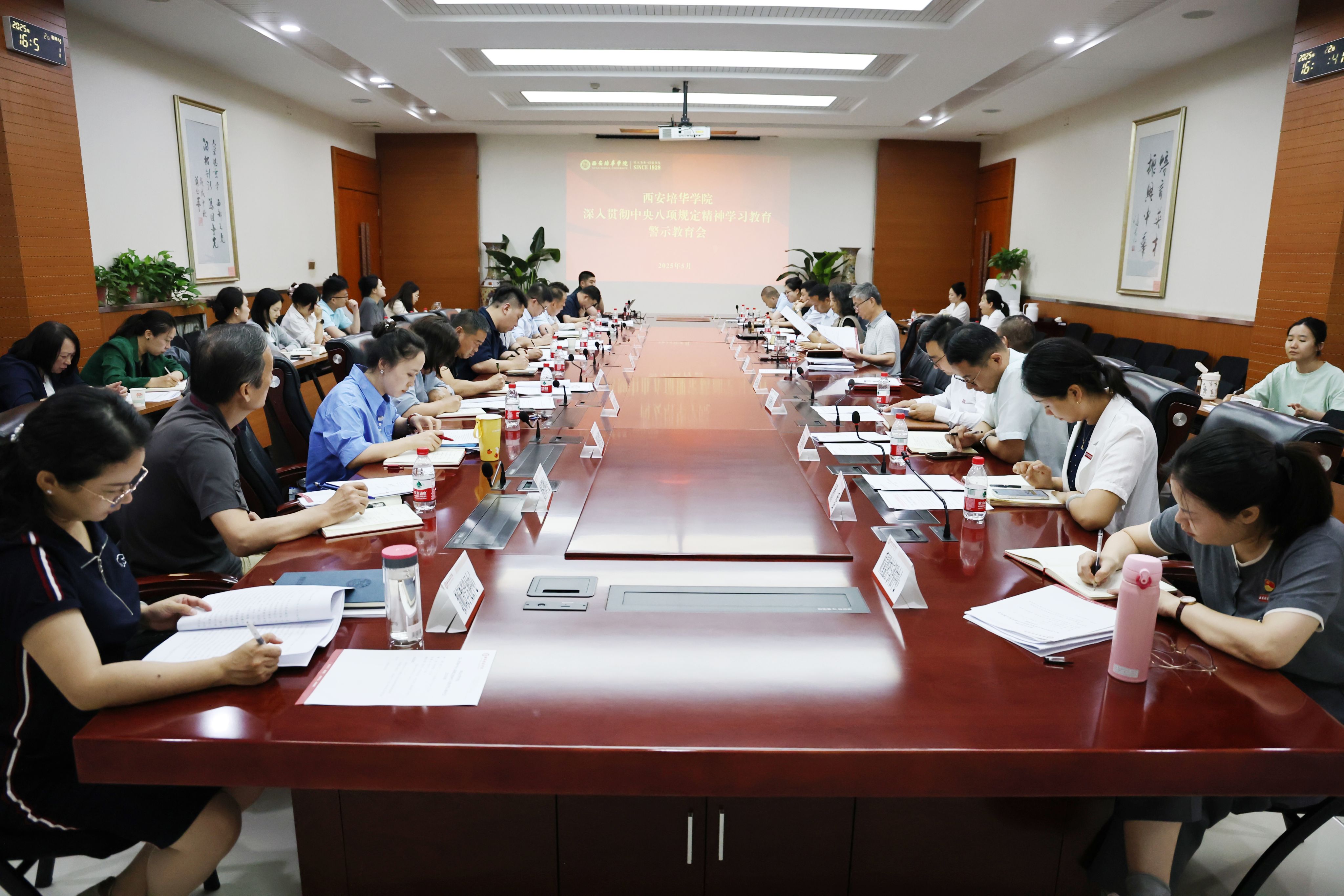 5月22日,深入贯彻中央八项规定精神学习教育警示教育会于明德楼第一会议室召开。参加本次警示教育会的有校长、党委副书记李映方,党委书记刘锋,党委副书记、副校长姚文静,党委副书记蔡亮,纪委书记陈玲及校党委其他委员、纪委委员,职能部门主要负责人,各基层党组织书记、副书记。
