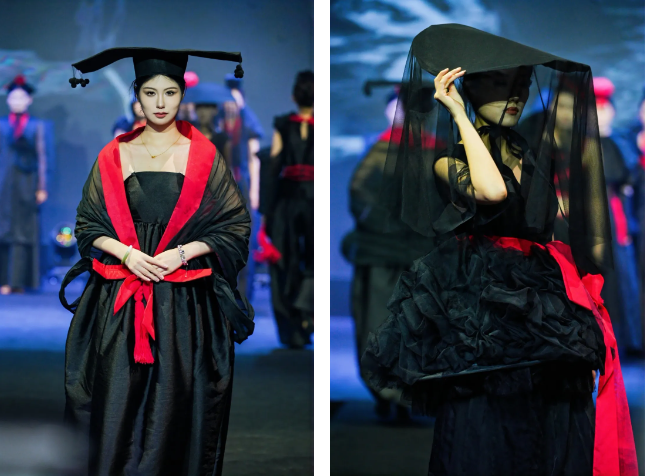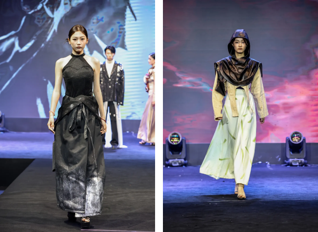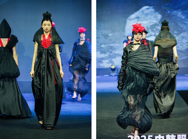 此次中方展演的服饰均来自于西安培华学院传媒与设计学院服装与服饰设计专业2025届学生毕业设计作品,这些承载着学子心血与创意的服饰,在灵动鲜活的动态展演中,宛如被注入鲜活力量,淋漓尽致地绽放出独特而蓬勃的生命力。