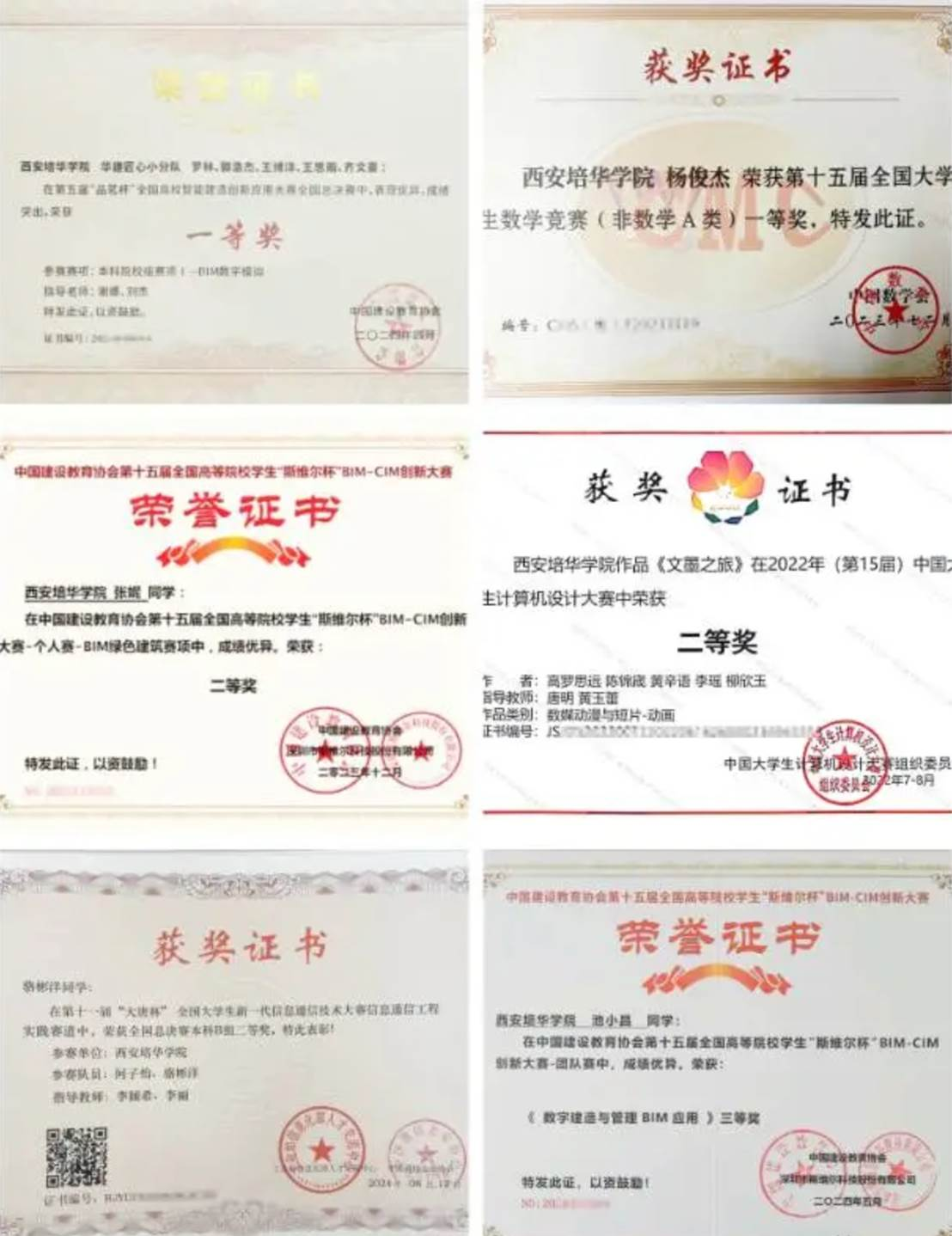 近三年学生参赛累计获奖652项、获得国家级奖项136项、省级奖项516项,比赛涉及大学生国际竞赛国奖、全国高校计算机能力挑战赛国奖、全国高校BIM毕业设计创新大赛国奖、全国大学生信息安全与对抗技术竞赛国奖、全国建筑创新应用大赛国奖、华为ICT大赛国奖、大学生数学竞赛省奖、大学生计算机设计大赛省奖、全国大学生数学建模省奖、电子设计大赛省奖、大学生创新创业省奖......
