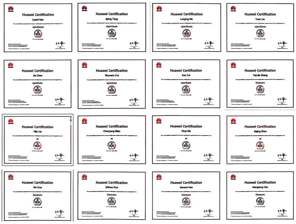 华为数据通信与AI等职业认证部分证书