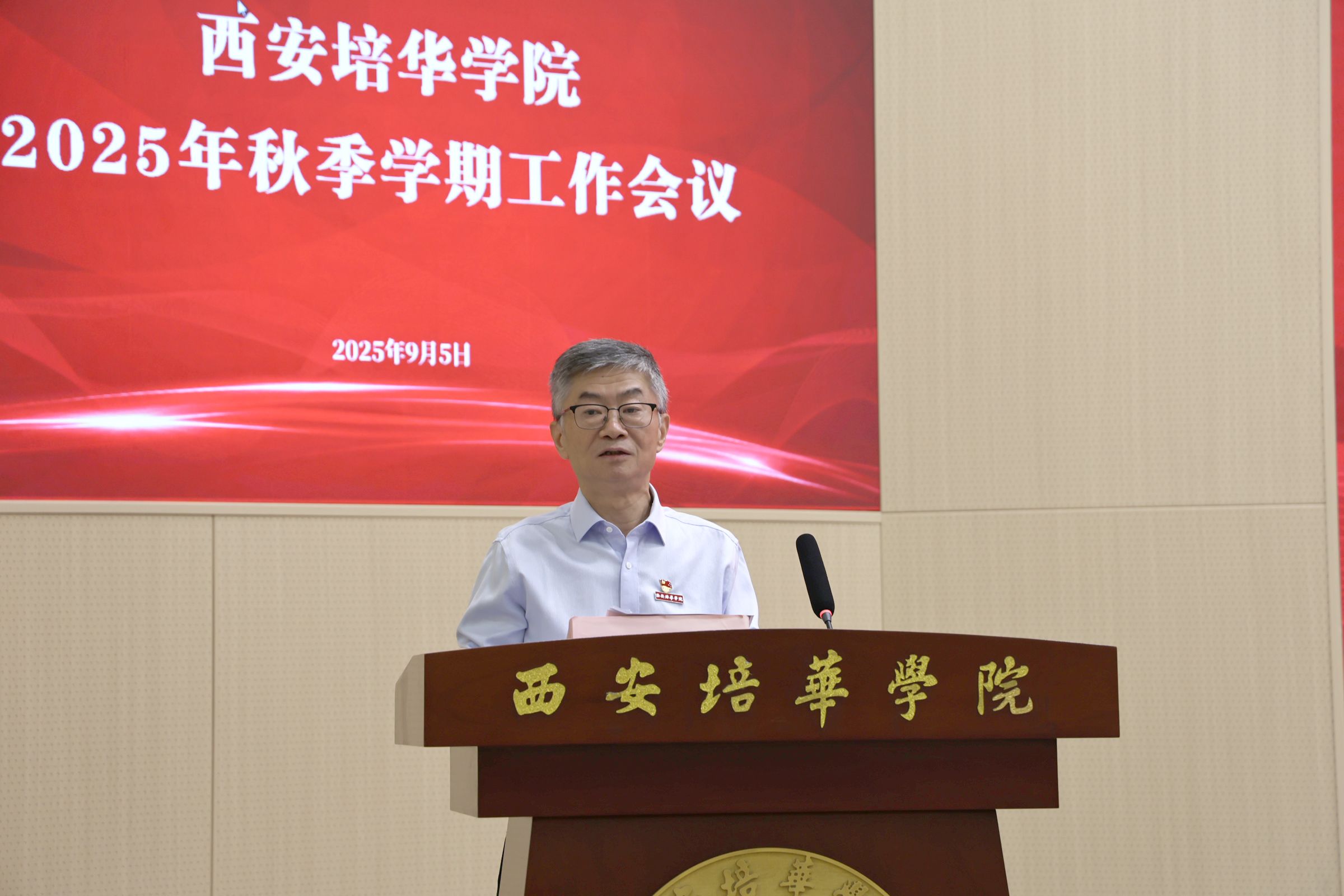9月5日,西安培华学院召开2025年秋季学期工作会议,部署安排新学期重点工作,明确任务,凝聚合力,推进学校高质量发展。学校全体校级领导、中层干部、教职工代表等170余人参加会议。本次会议由工作部署会和专题辅导报告两个环节组成,党委书记刘锋主持会议。