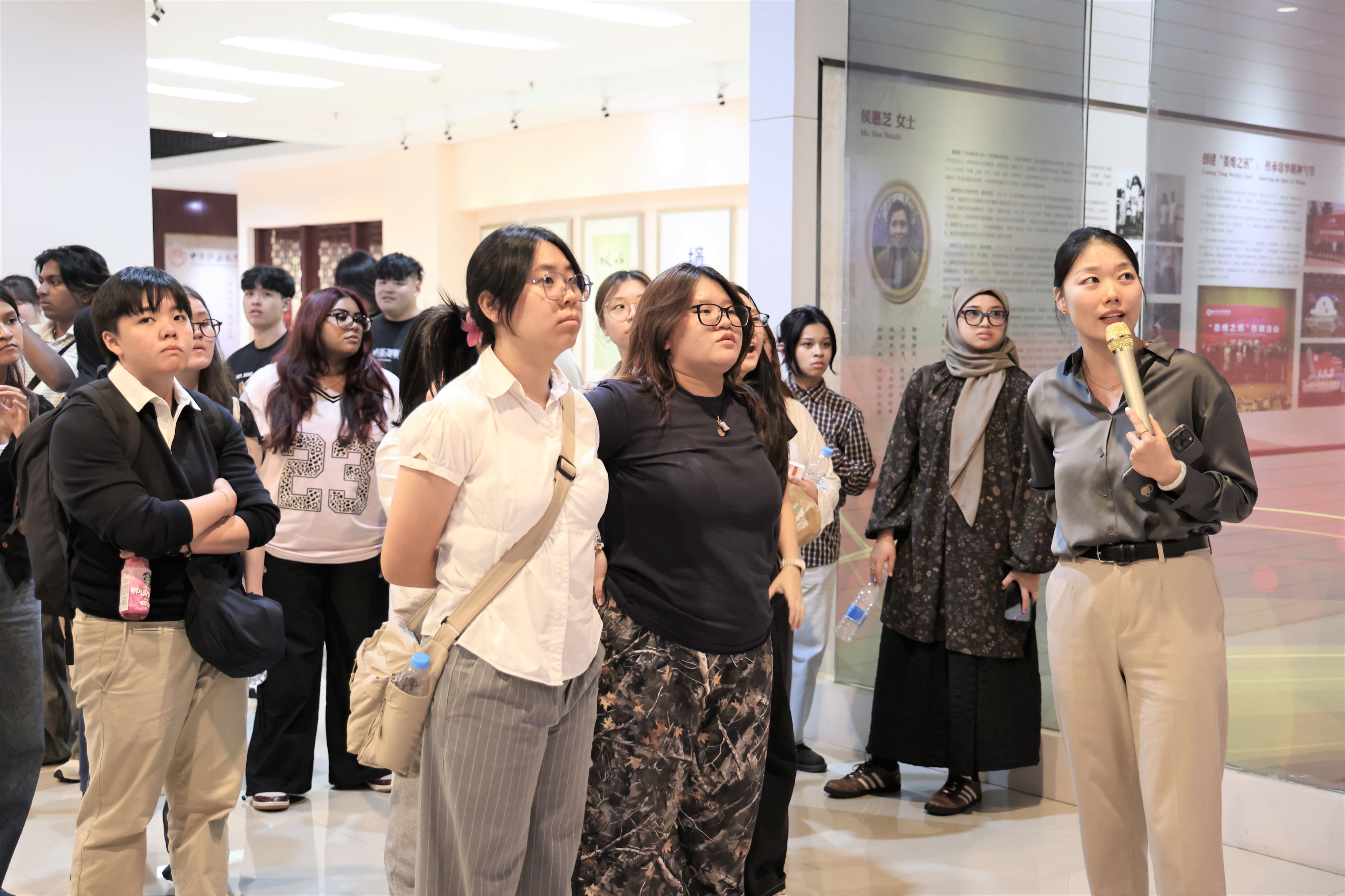 访问期间,代表团在校方陪同下参观了学术交流中心与培华艺术馆。学术交流中心陈列了传媒与设计学院2025届优秀毕业设计作品,涵盖视觉传达设计、工艺美术、服装与服饰设计等多个专业,获得新方师生高度评价。艺术馆展出的漆艺作品与甲骨文展览,也彰显了西安培华学院的文化底蕴与专业特色。