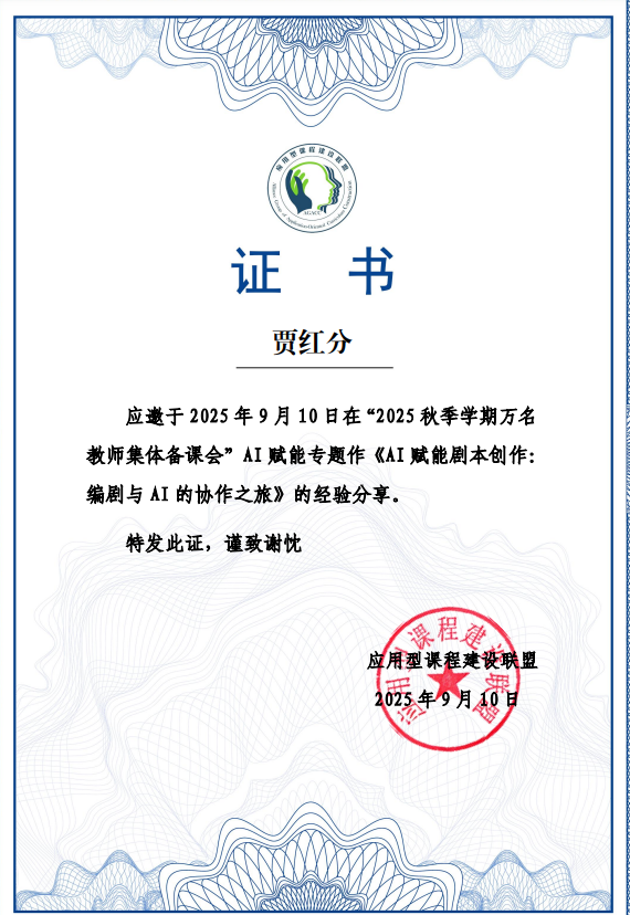 活动期间,应用型课程建设联盟为贾红分老师颁发荣誉证书。此次培华教师受邀参与全国性教学研讨活动,不仅展示了学院在AI教学改革中的创新成果,更彰显了学院对教育技术融合发展的前瞻布局。活动成效显著,将为学院进一步深化AI赋能教育改革、培育新时代复合型师资队伍注入强劲动力。