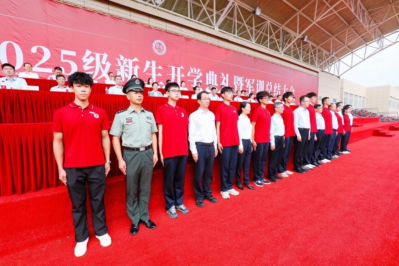 校长李映方宣读《关于表彰2025级新生军事国防教育先进集体和个人的通报》《关于表彰2025级新生军训团军训教官的通报》。获得2025级新生军事国防教育优秀连队、优秀个人和优秀内务寝室、标兵教官代表分别上台领奖。党委书记刘锋向承训部队赠锦旗,对全体承训教官“青春无悔献国防”的使命担当和“言传身教育栋梁”的辛勤付出表示衷心感谢。