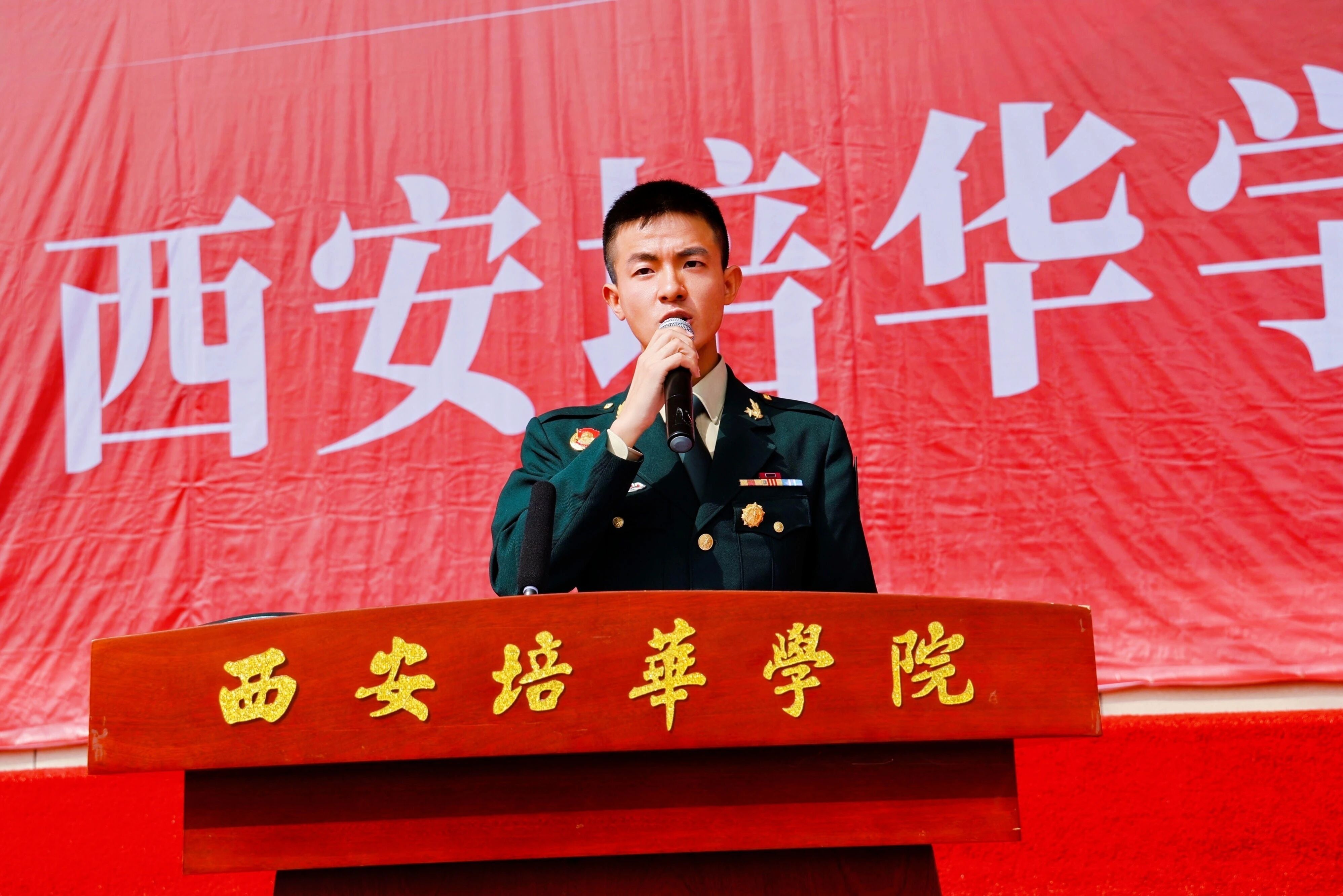 2025级新生代表、医学院口腔医学技术专业赵嘉辉分享了初入校园的温暖体验。他表示将从培华百年历史中汲取“以人为本、以德为先”的育人力量,通过军训深刻纪念抗战胜利80周年,传承红色基因,勇担时代使命。他立下目标:坚持锻炼强健体魄、持续突破自我,呼吁全体新生以坚持为笔,将青春融入培华百年征程,书写属于自己的成长篇章。