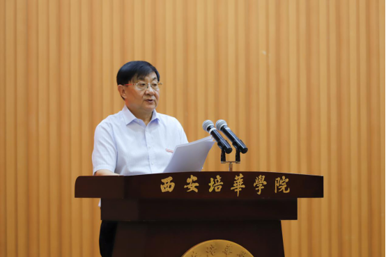 姜波理事长在会上发表热情洋溢的讲话。他指出,在新学期开始,首先对上半年全体师生各位同仁为了培华的发展取得了相关的成绩表示由衷的感谢,并强调在疫情常态下、人口减少、老龄加剧,必须要创新发展,要抱着一个从零开始的心态面对各项教育工作;要立足过去,现在放眼未来;作为教育者在今天必须要保持良好的心态清醒的头脑,保持强有力的定力保持保持不断学习,不断创新持续奋斗的闯劲,作为教育者要更加肩负起做教育的责任与担当;要全面施展“一院一策,多规合一、协同推进、共同发展”。他希望全体教职员工不断坚定理想信念,更加脚踏实地的学习、工作、生活,不断总结反思,提升管理水平和风险控制能力,在教学、管理、创新等各个方面持续推进,将西安培华学院打造成为同类院校中性价比、含金量最高的院校,希望未来培华的生源质量、培养质量和就业质量可以越来越高,让培华毕业生有更高的幸福感和成就感,在充满挑战的新时期写好“十四五”开局之年,推动高水平民办大学建设迈上新台阶。