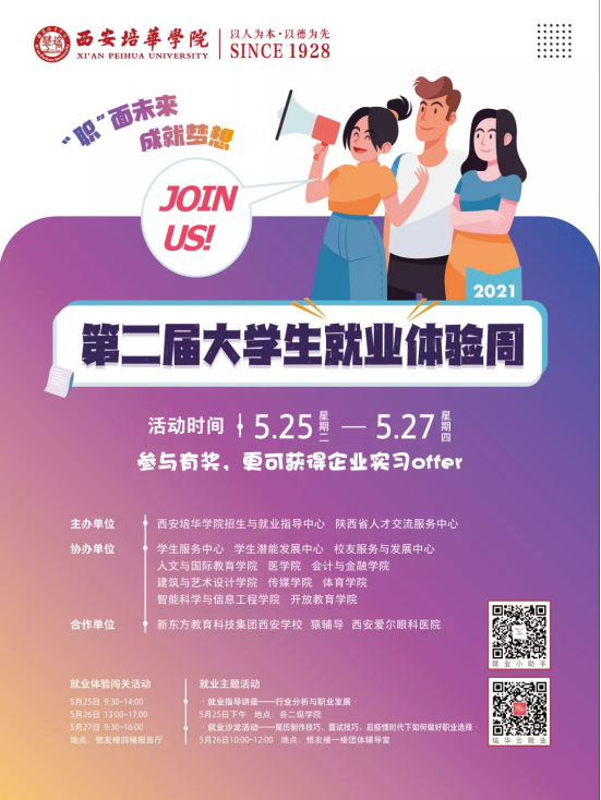 5月25日,西安培华学院第二届大学生就业体验周在恒友楼四楼报告厅开幕。
