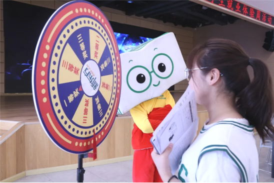学生们一边玩游戏一边答题,将原本枯燥的就业技巧融入游戏当中。活动现场充满欢声笑语。