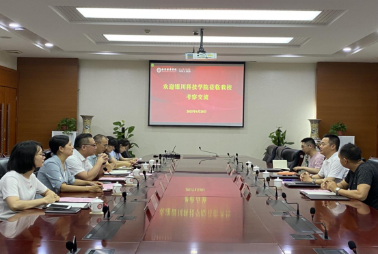 6月28日上午,银川科技学院教务处常务副处长拓万兵一行来学校就教学管理服务、高职建设与教学管理、高职及本科协同发展等方面工作展开经验交流,教务管理中心副主任张伟、刘斌、主任助理孟倩及相关部门人员参加了此次交流座谈会。