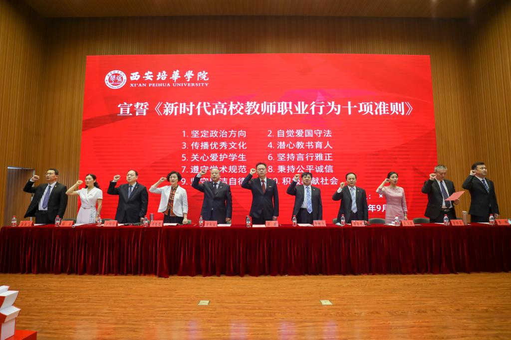 9月9日下午,西安培华学院在维之图书馆报告厅举行2021年庆祝教师节暨表彰大会。全体校级领导,各院(部)、中心负责人、教师代表、辅导员代表近300人参加了会议。