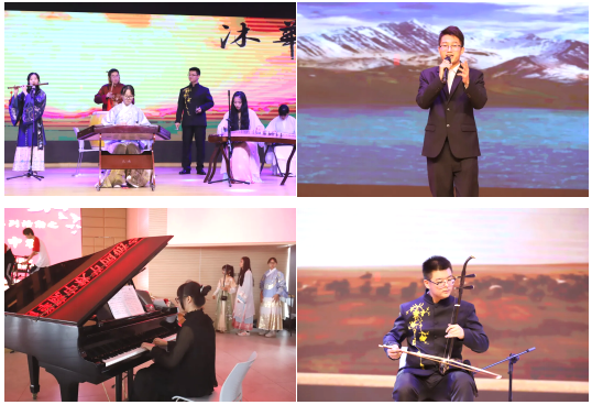 繁华声落尽汴梁城,锁于江南氤氲雨雾中,笛子、二胡、古筝等多种乐器的交融,汇出了一幅生意盎然的《清明上河图》。伴着民歌《羊肚肚手巾,三道道蓝》,仿佛置身于陕北,站在黄土高原之上不禁也想引吭高歌一曲。一支钢琴演奏,将纯真与热烈融合的恰到好处,每一段乐章、每一个音符都表达着对中秋的祝福。弹唱出的《红旗飘飘》,将中华神州的明天照耀得更加辉煌。《战马奔腾》的盛况,用一把二胡表现得淋漓尽致,激昂澎湃地展现了骏马的威武之气。