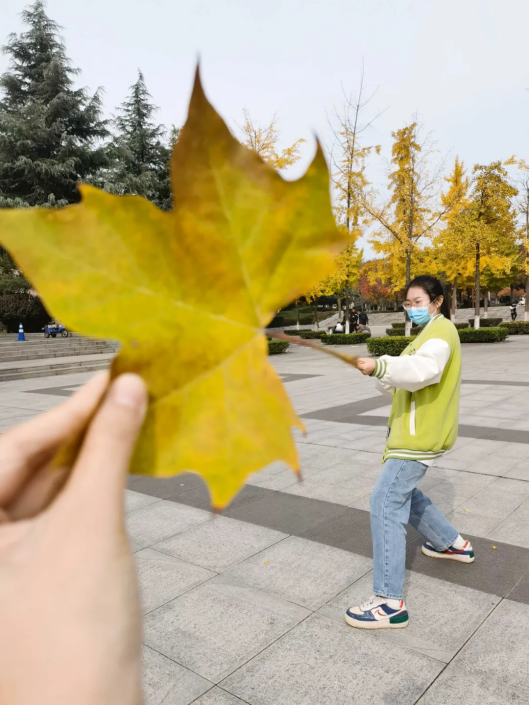 一个取景框透,过它看到的是培华的层林尽染,是培华的你,也因这一片卷起来的心形叶子,整个秋天都变成了爱你的模样。