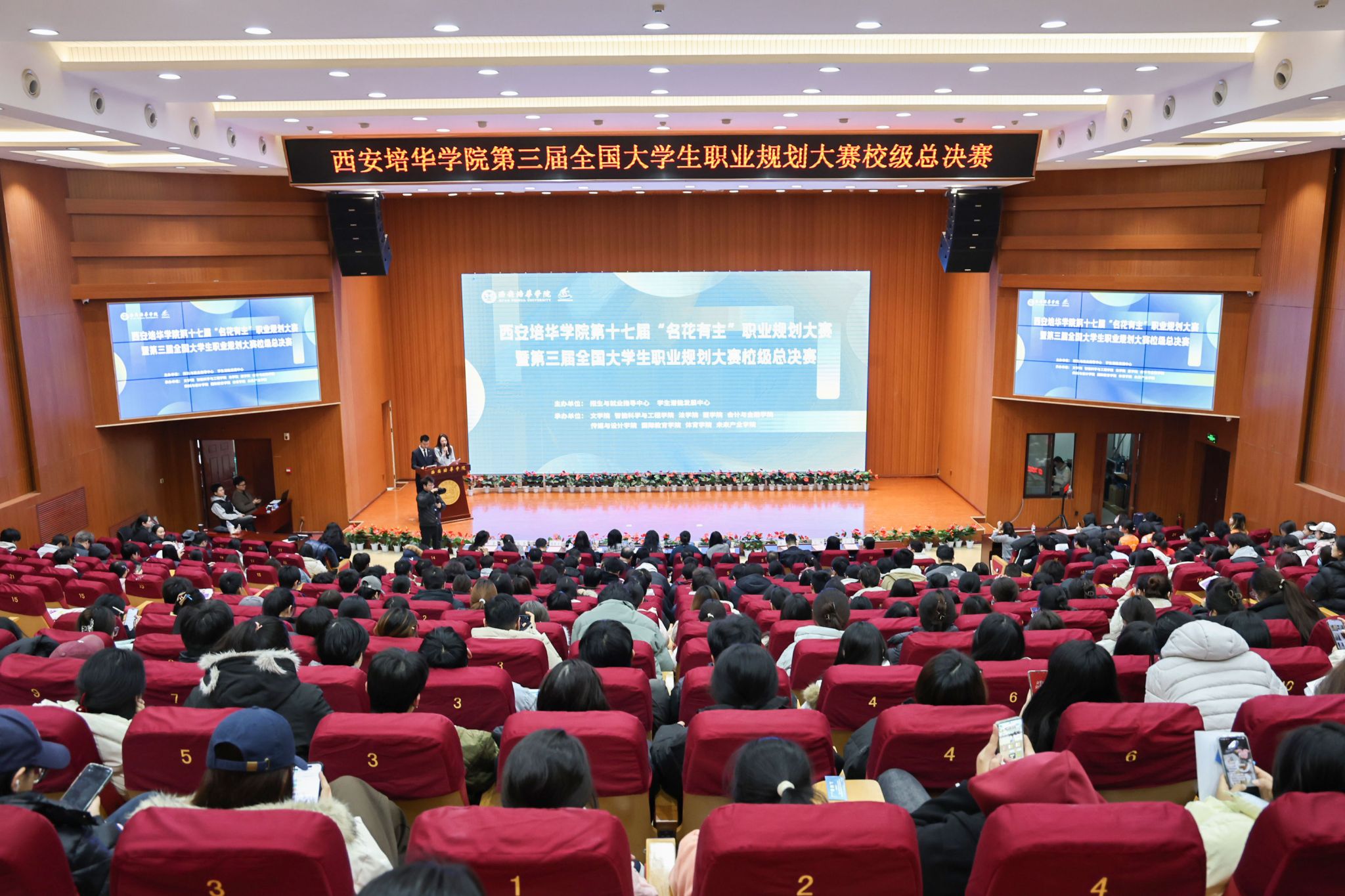 为了推动职业规划教育落地见效,助力学子明确发展路径,12月26日,西安培华学院第十七届职业规划大赛暨第三届全国大学生职业规划大赛校级总决赛举办。成长赛道竞风采,就业赛道展锋芒,两场精彩角逐,初心一脉相承,既为学子搭建了职业探索的实践舞台,更凝聚起逐梦前行的青春力量,共绘培华学子职业理想的奋进图景。