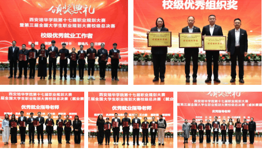 领导嘉宾为校级优秀就业工作者、校级优秀组织、优秀就业指导老师、大赛优秀指导老师颁奖