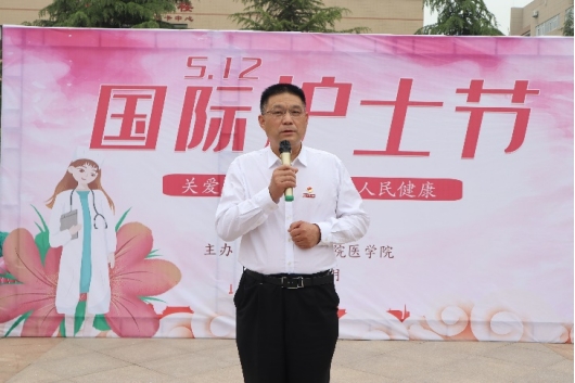 他首先向为维护群众健康而辛勤工作、无私奉献的护理人员致以节日的祝贺,向为医院建设和发展付出心血和汗水的各位护理老专家表示衷心的感谢!同时他说到作为时代新青年,要做理想远大、信念坚定的模范,做刻苦学习、锐意创新的模范,更重要的是作为一名医护生,要练就过硬的业务技能,提供优质的护理服务。