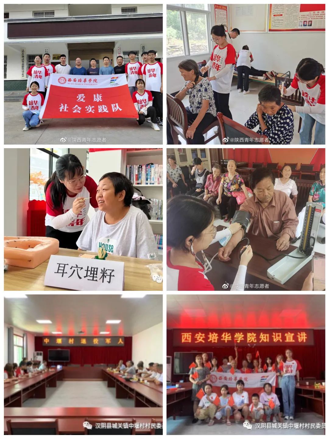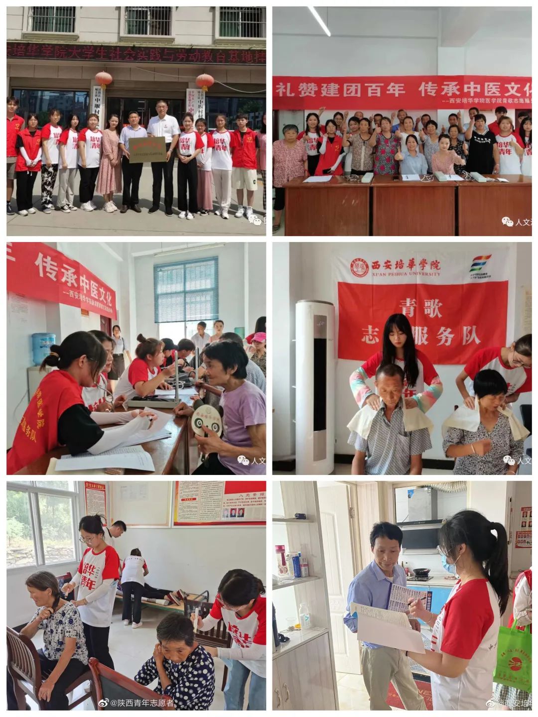 实践队员们各个村镇心系村民下乡义诊、将温暖送入心间,为当地老乡测量血压、刮痧、肩颈按摩,耳穴埋豆,关节艾灸等中医理疗服务;开展科普宣教活动,丰富村民医学知识;开展趣味活动、关爱儿童成长;学习百年党史,聆听红色故事;开展汉阴基层医疗设施调研,为服务汉阴当地医疗健康卫生发展贡献青春力量。
