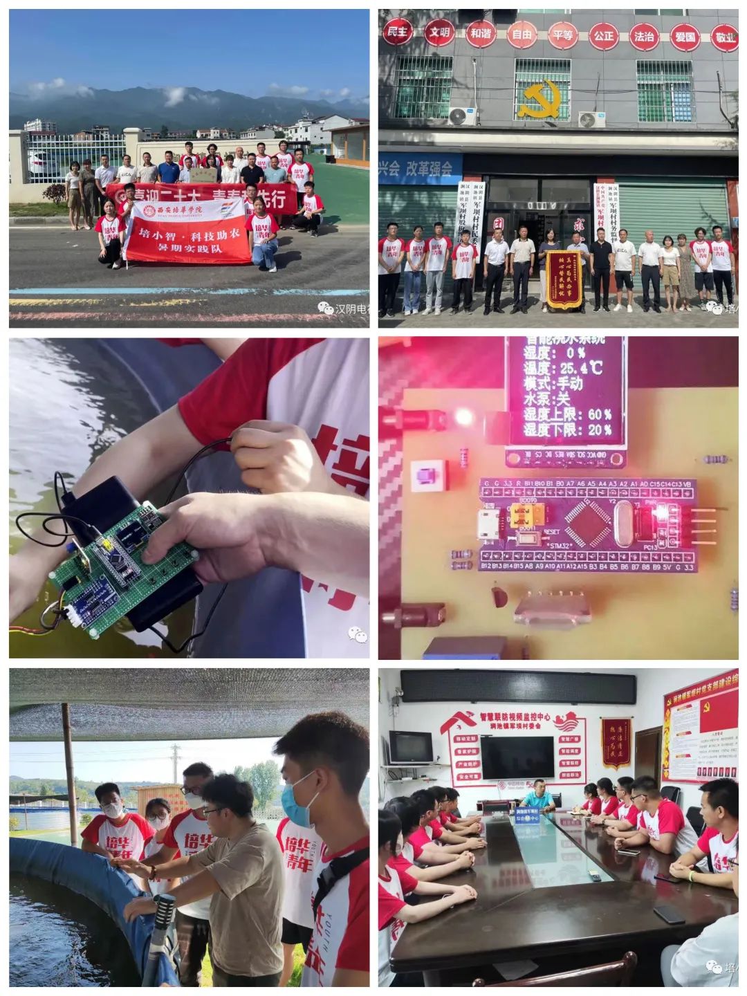 在汉阴专项实践团中,智能科学与信息工程学院培小智•科技助农暑期实践队在涧池镇军坝村开展智能“云”灌溉——基于 STM 32 单片机大棚环境参数无线蓝牙检测及灌溉系统调研。