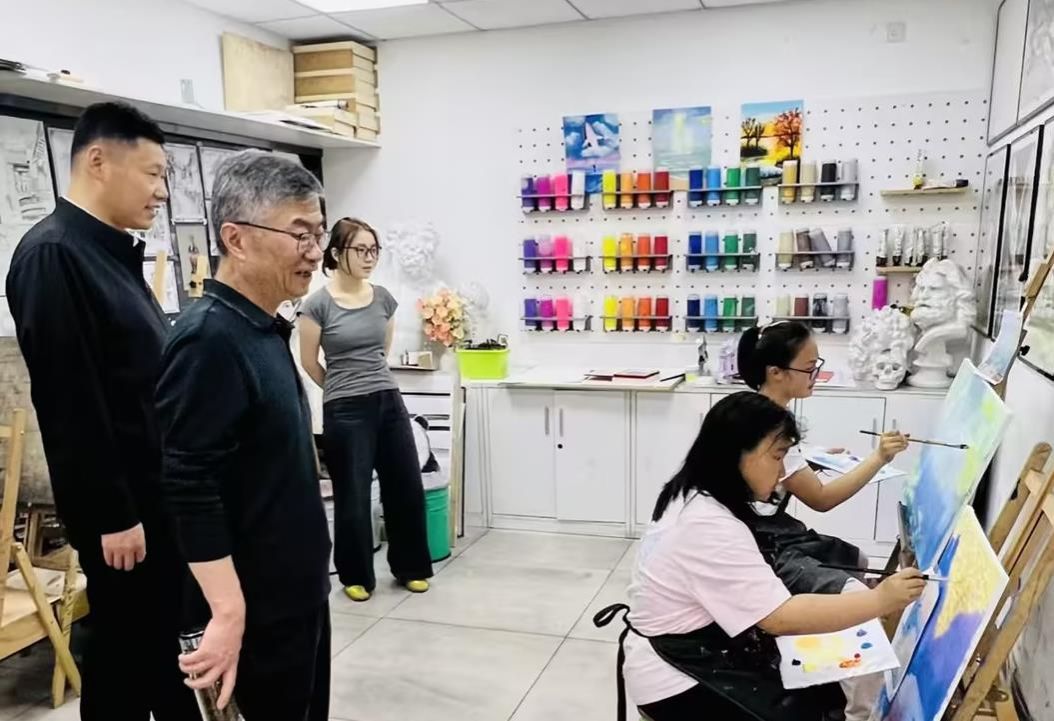 北京镏金岁月文化发展有限公司法人及总经理王晓云,对刘锋书记和蔡亮副书记的到来表示热烈欢迎。她带领校领导参观了自创品牌“马赛克艺术学校”在北京的两个校区,并详细介绍了公司与培训学校发展情况。据悉,王晓云校友创办的“马赛克艺术学校”,凭借专业的教学品质与显著的育人成效,赢得了社会各界的广泛认可。2018年成为中国舞蹈家协会指定“中国舞蹈考级单位”;2020年,获评“星光飞扬”全国青少年才艺特长新春晚会年度品牌教育机构;2022年,荣获第二十二届阳光灿灿花儿朵朵少儿舞蹈展演优秀组织单位;2023年,在“北京社会美术考级年会暨美育论坛”上斩获优秀辅导教师奖,体现了教学团队的专业实力,她本人也曾被邀请担任“海峡两岸临摹大赛”评委;2025年,荣获北京广播电视台文艺频道年度战略合作单位,彰显了机构在艺术教育领域的影响力。多年来,“马赛克艺术学校”累计培育学员2000余名,目前在校生超700人。2025年更是获得北京市通州区文旅和教委的认可,并成为全国美术考级定点机构。刘书记一行在深入了解校友企业情况后,与校友进行交流座谈。