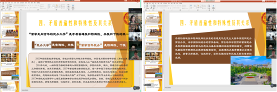 陈欢老师结合培华校史,讲授“矛盾的普遍性和特殊性”原理,使学生明白矛盾的普遍性和特殊性辩证关系的原理,是马克思主义基本原理同民办高校办学、治学实际相结合的哲学基础。培华就是坚持把马克思主义基本原理同学校实际相结合,同陕西民办教育实际相结合,在推进民办教育取得新成绩。