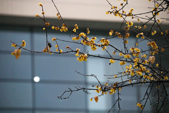 “春雨断桥人不度,小舟撑出柳阴来。”春雨,洗净尘埃,换得一片春色,开了一冬的腊梅被映衬的更加艳丽。