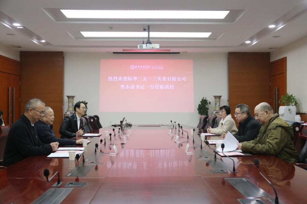 2月20日,际华三五一三实业有限公司党委书记樊永康、党委副书记张亚军、总经理助理杨莹一行来校考察交流,与学校党委书记罗新远、校长助理秦海锋等座谈交流,教务管理中心副主任刘斌主持会议。