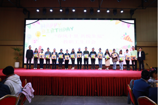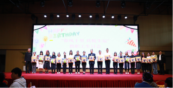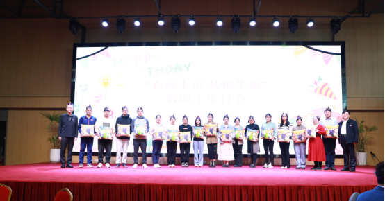 伴随着热烈的掌声,姜波理事长代表学校领导班子为各位寿星送上真诚祝福,感谢大家的辛勤耕耘、点滴付出以及为学校发展做出的贡献。