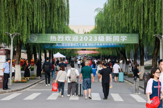 风雨暂歇,阳光正盛。校内洋溢着浓浓的青春气息,四处可见的条幅、帐篷、标语向来自五湖四海的2023级新生,展示最热烈的欢迎和问候。