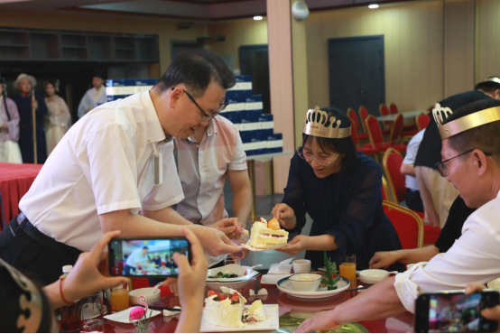 姜波理事长代表学校为各位寿星老师们送上真挚的生日祝福,他讲到今年上半年学校各项工作取得的成绩,离不开老师们的辛勤付出,希望大家在新的学期勇于突破创新,取得更大的辉煌。