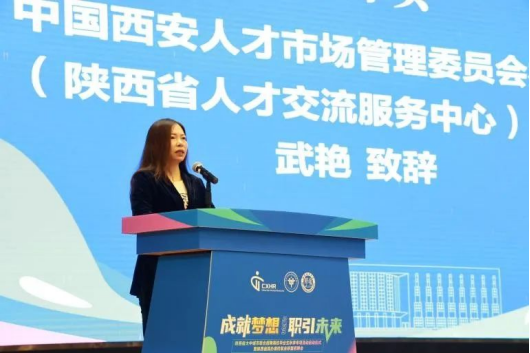最后,由中国西安人才市场、陕西省人才交流服务中心副主任武艳致辞,“大中城市联合招聘是由人社部推出的面向高校毕业生的专项活动,致力于搭建用人单位和高校毕业生的沟通桥梁,进一步整合各方资源,创新招聘模式,为用人单位和求职者搭建好平台,帮助高校毕业生等青年群体尽快尽早就业。”