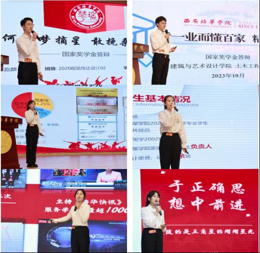 学生答辩按本科组(19人)和专科组(6人)分别进行。答辩会上,参加答辩的25位国家奖学金获得者候选同学,从思想情况、学业成绩、各类竞赛、证书考取、社团实践、所获奖项等方面展示个人情况,依次上台进行讲述,对本人在校期间努力和收获进行充分的剖析与总结,同时描绘了对未来的学习、生活做出美好的蓝图。他们自信自强、各展所长;他们心中有梦想,眼中有光芒,他们优异的表现赢得现场阵阵掌声。