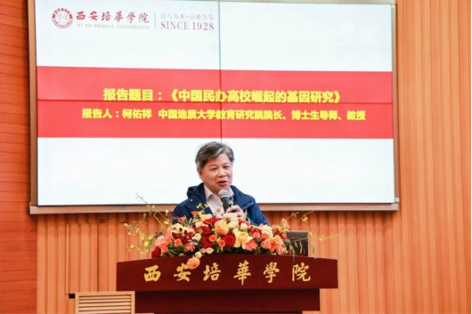 中国地质大学教育研究院院长、博士生导师柯佑祥教授作题为“中国民办高校崛起的基因研究”的报告