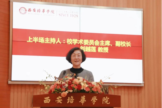 报告会上半场主旨论坛由西安培华学院学术委员会主席、副校长刘越莲教授主持