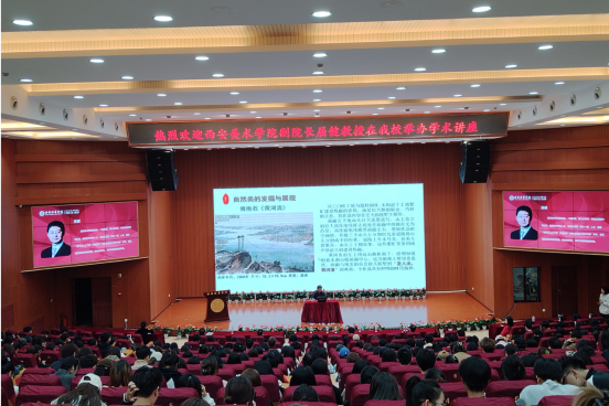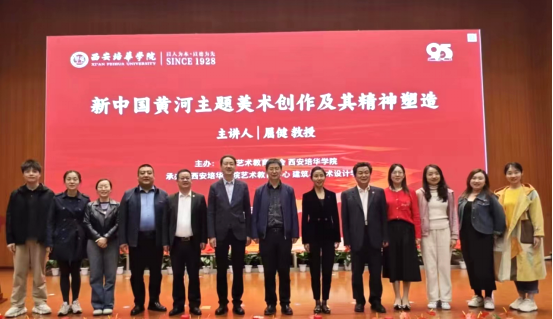为庆祝培华建校95周年华诞,丰富校园文化生活,提高学生人文素养,10月31日,由西安艺术学会、西安培华学院联合举办,艺术教育中心、建筑与艺术设计学院承办的美育大讲堂活动在图书馆报告厅举行。本次活动邀请中国文联特约研究员、西安美术学院副院长、文学博士、二级教授、博士生导师屈健教授为我校师生带来题为“新中国黄河主题美术创作及其精神塑造”的讲座。艺术教育中心主任刘荣弟,医学院党委书记、副院长王平安,建筑与艺术设计学院副院长王虎,党委书记、副院长王飞,党委副书记南斌红及培华师生500余名学生参加。讲座由西安培华学院副校长姚文静主持。