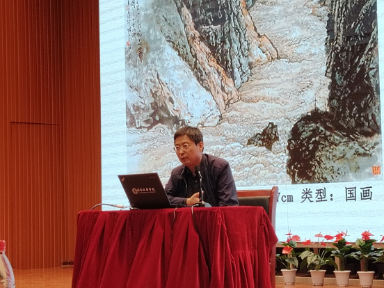 屈健教授通过新中国黄河主题美术创作的多样化呈现、黄河主题美术创作与时代语境的共振等内容,介绍了黄河自然美的发掘与展现、黄河精神的艺术表达,展现了黄河忧患悲壮、天下为公的家国情怀,不畏艰险、英勇奋发的抗争精神,汇纳百川、厚德载物的包容精神及披荆斩棘、生生不息的创新精神。整场讲座中无数雄浑有力、精美传神的黄河主题美术作品为现场同学们留下了深刻印象。
