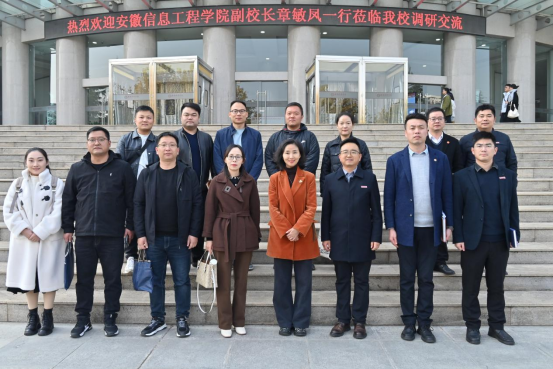为交流经验、提升学生工作管理能力,优化学生工作管理措施,完善学生工作管理制度。11月20日下午,安徽信息工程学院副校长章敏凤一行9人来我校进行调研交流。我校党委副书记、副校长姚文静,党委学工部副部长姚斌,人文与国际教育学院党委书记、行政副院长南兵,智能科学与信息工程学院党总支书记、行政副院长王林,建筑与艺术设计学院党委书记、行政副院长王飞等在图书馆接待室接待了来访嘉宾一行。