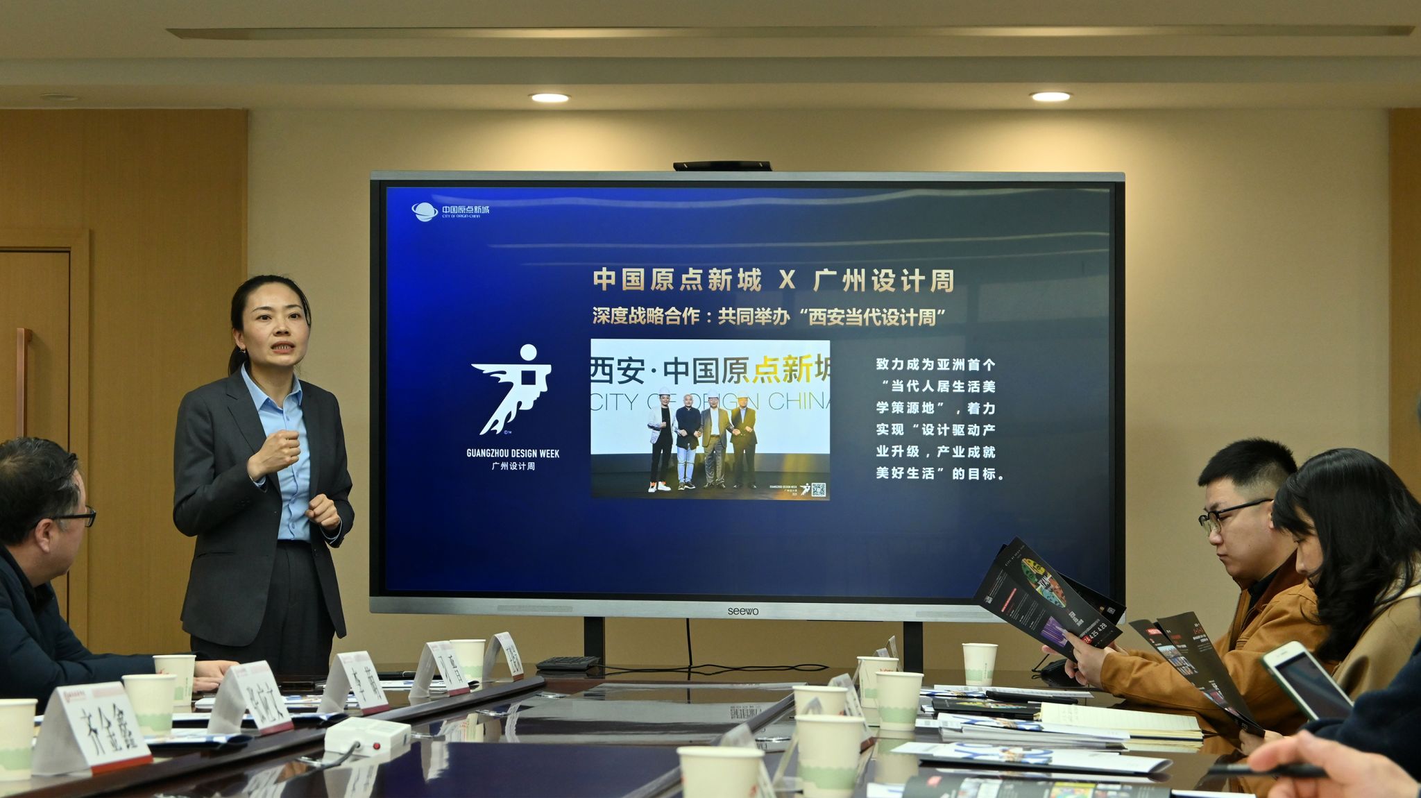 中国原点新城(西安当代设计周承办单位)外联及营销企划中心总经理李萌代表组委会介绍了本次西安当代设计周的筹备、组织等情况,明确了将积极响应国家产教融合政策号召,立足西部汇聚全国乃至中亚的产业资源和专业群体,引导5000+入驻品牌与高校互动交流,打造以内容驱动、产业升级为主的新展贸模式。