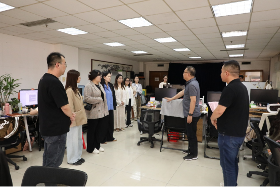 下午15时30分,位于长安路的陕西广电融媒体集团迎来了10名培华信息工作者,在都市生活中心都市融媒产品事业部孙玉龙主任的带领下,老师们先后参观了“广电指挥中心”“直播频道”“演播室”“剪辑房”以及“广电大院”等多个核心工作场所,全流程了解了电视新闻制作播出环节。