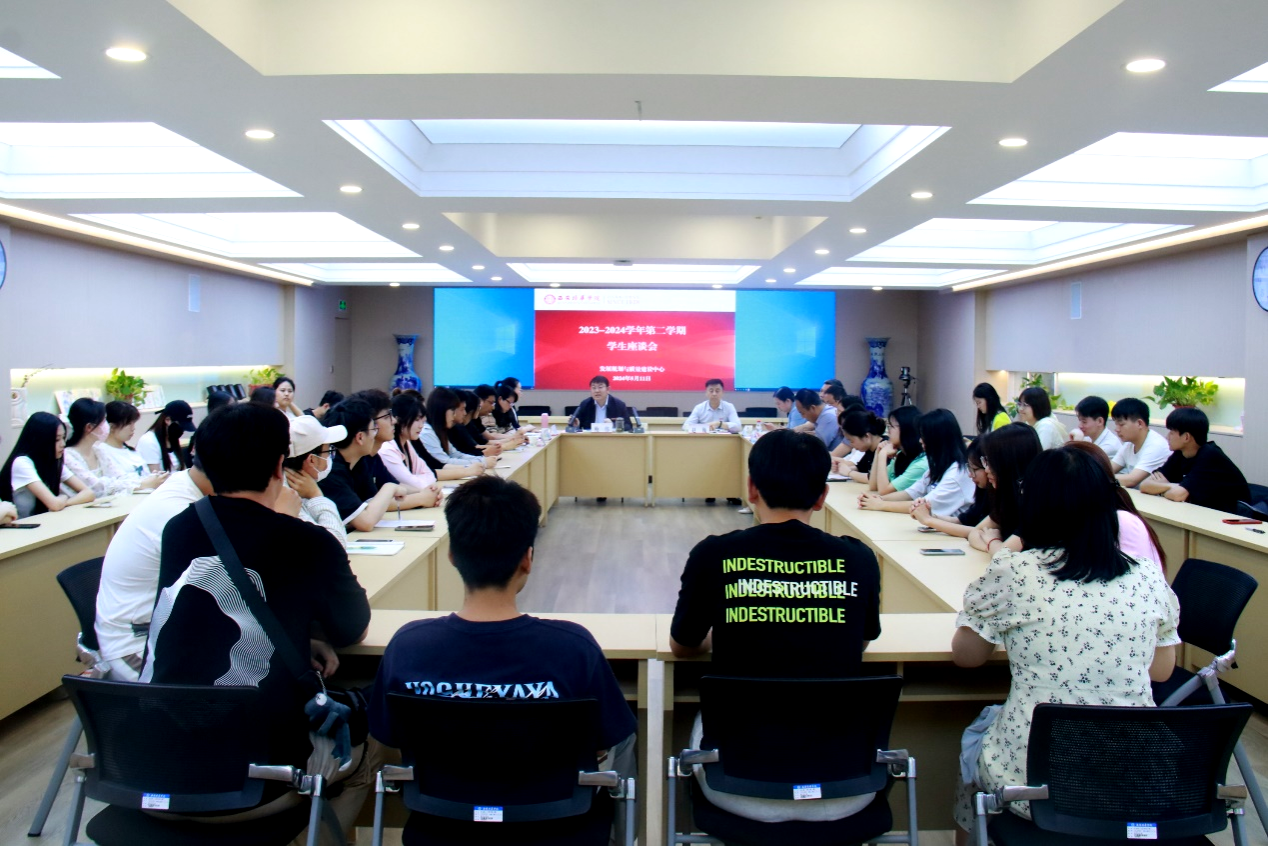 为及时了解学生的诉求和心声,帮助解决学生学习和生活中的实际困难,针对性改进各项工作,切实提高教育教学质量和管理服务水平,5月11日下午,学校在明德楼第二会议室组织召开学生座谈会。教务管理中心、学生服务中心、招生与就业指导中心、图书馆、信息中心、后勤服务中心、发展规划与质量建设中心有关领导与来自36个专业的40余名学生代表亲切交流座谈。座谈会由发展规划与质量建设中心主任助理全婧主持。