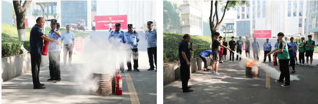 后勤服务中心消防管理任志军向师生演示灭火器和消火栓的使用方法