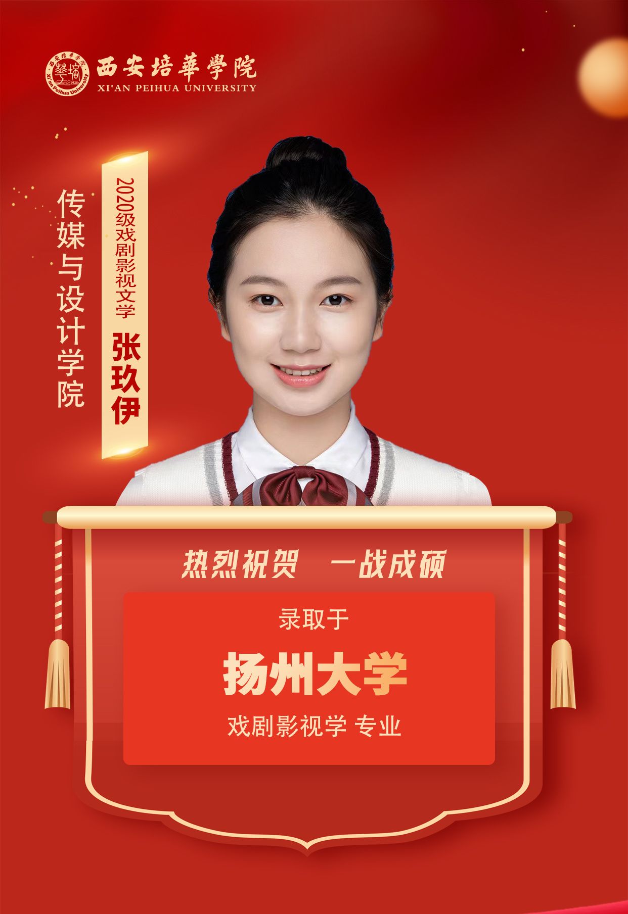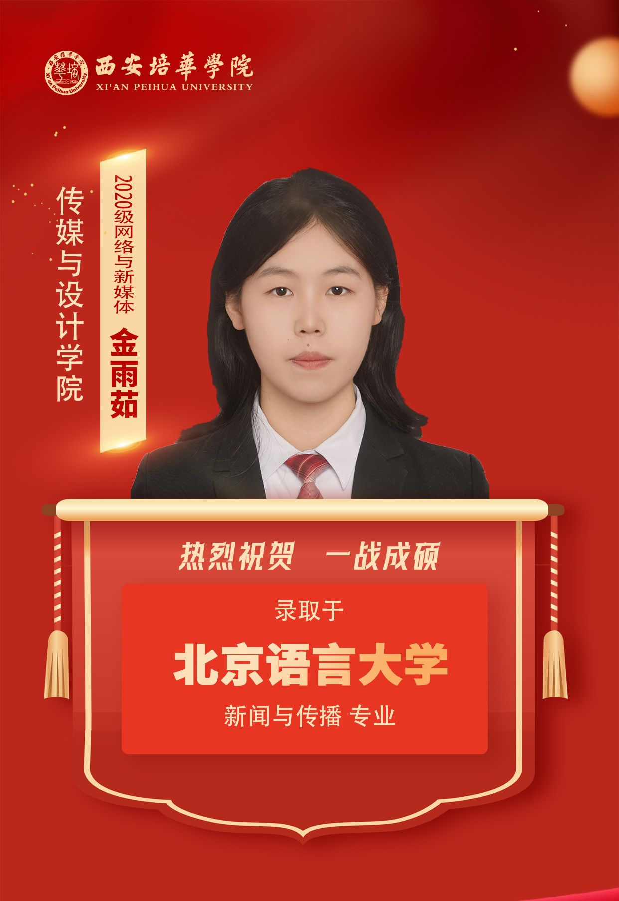 2020级网络与新媒体专业金雨茹(考入北京语言大学):其实考研并不难,难的是坚持。只要决定了,就请脚踏实地的认真完成。即使遇到再多困难,也不要忘记自己前行的初心。