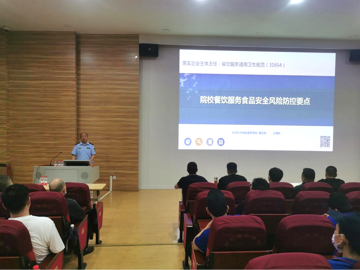 为进一步提升学校餐饮从业人员食品安全意识,扎实推进全校食堂食品安全风险排查管控,确保校园食品安全,5月29日下午,学校邀请了长安区市场监督管理局餐饮科王增民科长来校开展食品安全培训。学校各餐厅(档口)相关负责人180多人参加了培训。