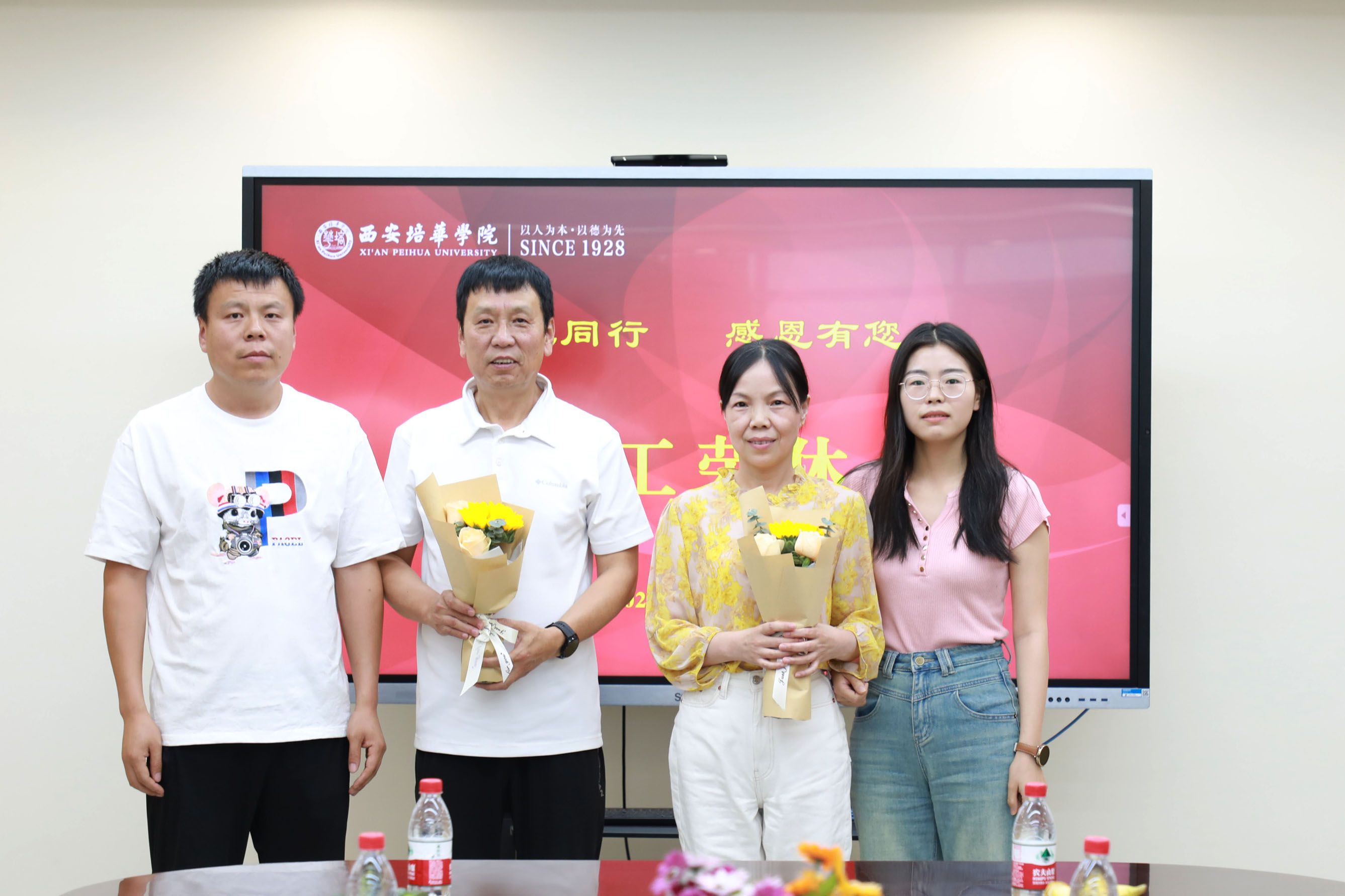 会上,陈玲为退休教职工李满莉、李建华分别赠送荣休纪念品,青年教职工代表送上鲜花祝福。陈玲回顾了两位老师勤恳工作对培华发展做出的贡献,并代表学校致以深深的敬意,祝福他们退休生活幸福美满,也诚挚邀请两位老师能够一如既往的关心和支持学校的发展,常回家看看,共同见证学校百年华诞。