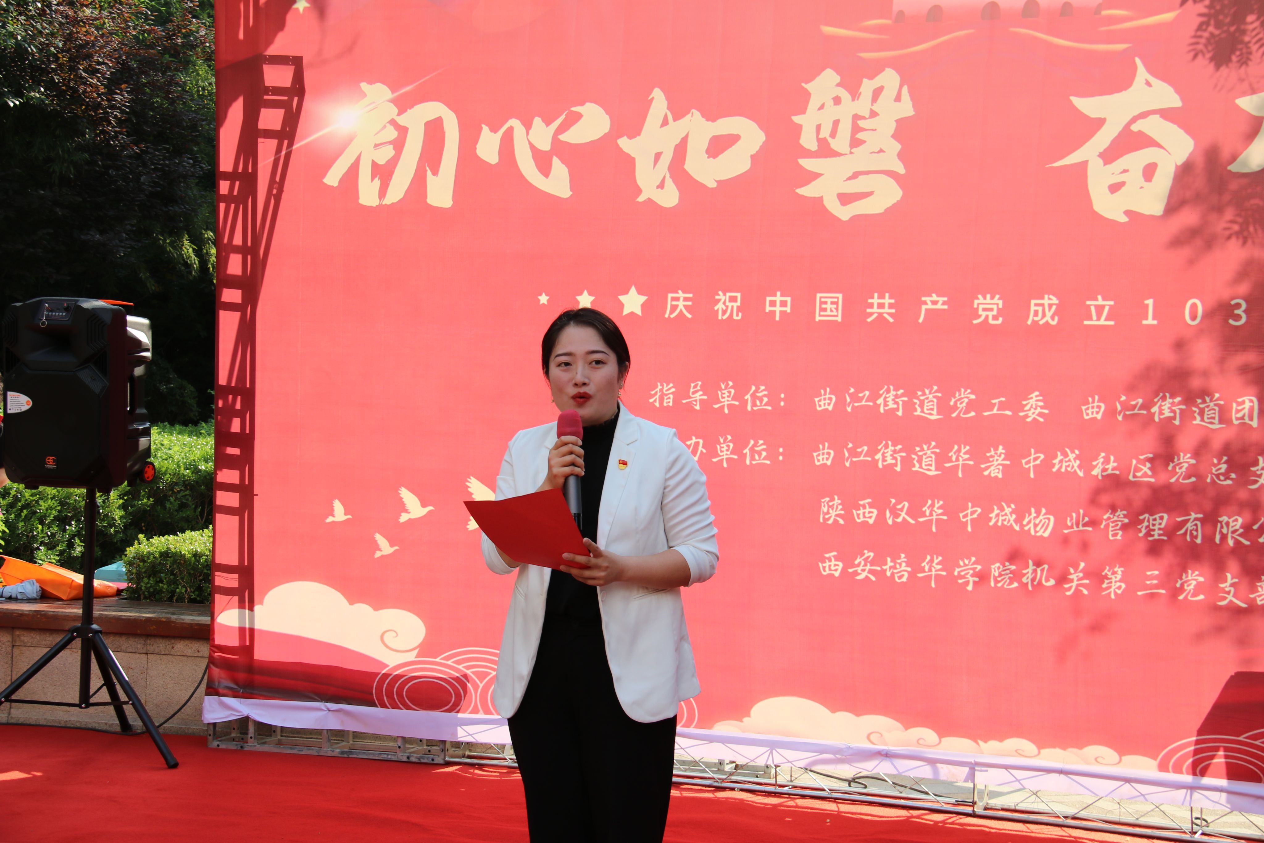 西安培华学院艺术教育中心主任刘荣弟、机关第三党支部副书记董莹,曲江街道党工委副书记雷振波、武装部部长王雄伟、团委书记李迪萨、社会治理和平安建设办公室科长邹志超、华著中城社区党总支书记苟鹏雅参加活动。