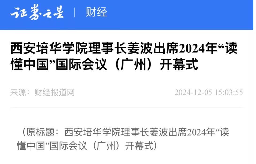 西安培华学院理事长姜波受邀参加了2024年“读懂中国”国际会议(广州)开幕式,并在“全人类共同价值和文明互鉴”研讨会上发言。姜波理事长是西安培华学院的举办人、理事长,也是世界华人协会副会长、世界华商投资基金会名誉会长,作为高等教育工作者在大会上和大家分享交流在文化和教育方面的研习体会。世界华人协会常务副会长、世界华商投资基金会创会主席马兴利博士与中国国际新媒体传播集团主席、华夏宗亲联谊会荣誉会长陈政峰先生世界杰出华人青年企业家盘玉博士陪同姜波理事长一同出席。
